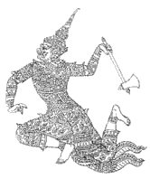 "รามสูร" เป็นยักษ์ ถือ "ขวานเพชร" เป็นอาวุธ เป็นเพื่อนกับ "พระราหู"